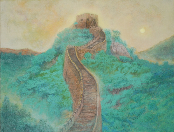 北京郊外の長城です。 何度も訪れた場所ですが、初めて絵にしました。山々をうねり連なる城壁は、大地から浮き上がった龍の背のようにも見えました。